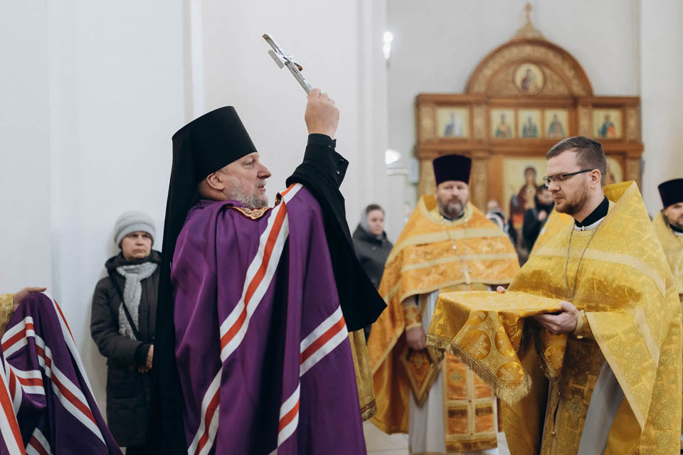 По заамвонной молитве Его Преосвященство и сослужащие ему священнослужители совершили молебен священномученику Константину Жданову, пресвитеру Шарковщинскому.
