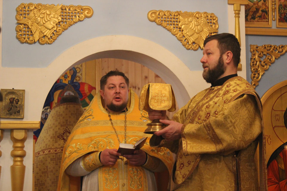 Далее в агрогородке Друя Браславского района настоятель храма Благовещения Пресвятой Богородицы протоиерей Игорь Чечукович возглавил Всенощное бдение с элементами народного пения. Ему сослужил диакон Константин Киселюк.