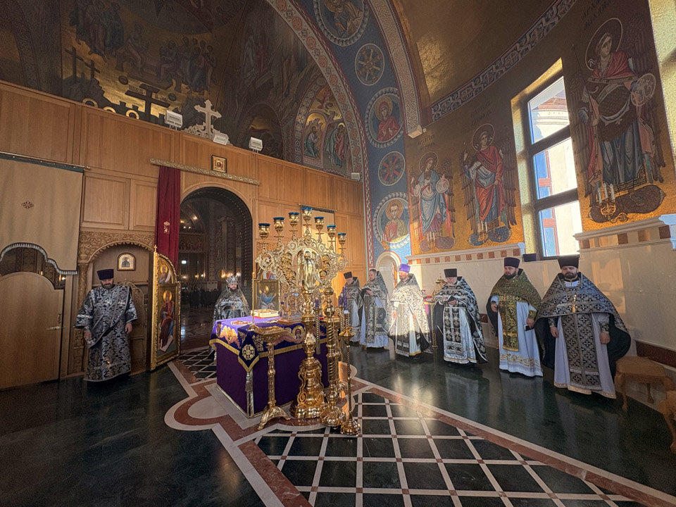 Богослужебные песнопения исполнил хор кафедрального собора.