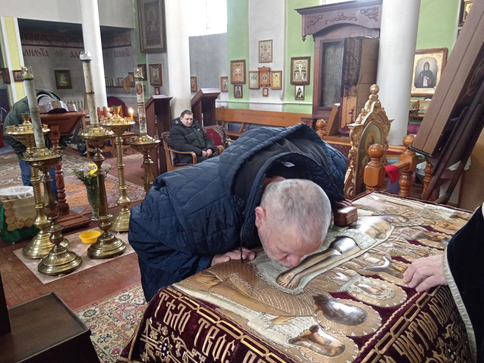 После принятия таинств насельники пансионата смогли помолиться и приложиться к старинной Святой Плащанице Спасителя, которая находится в Солтановщинской церкви.